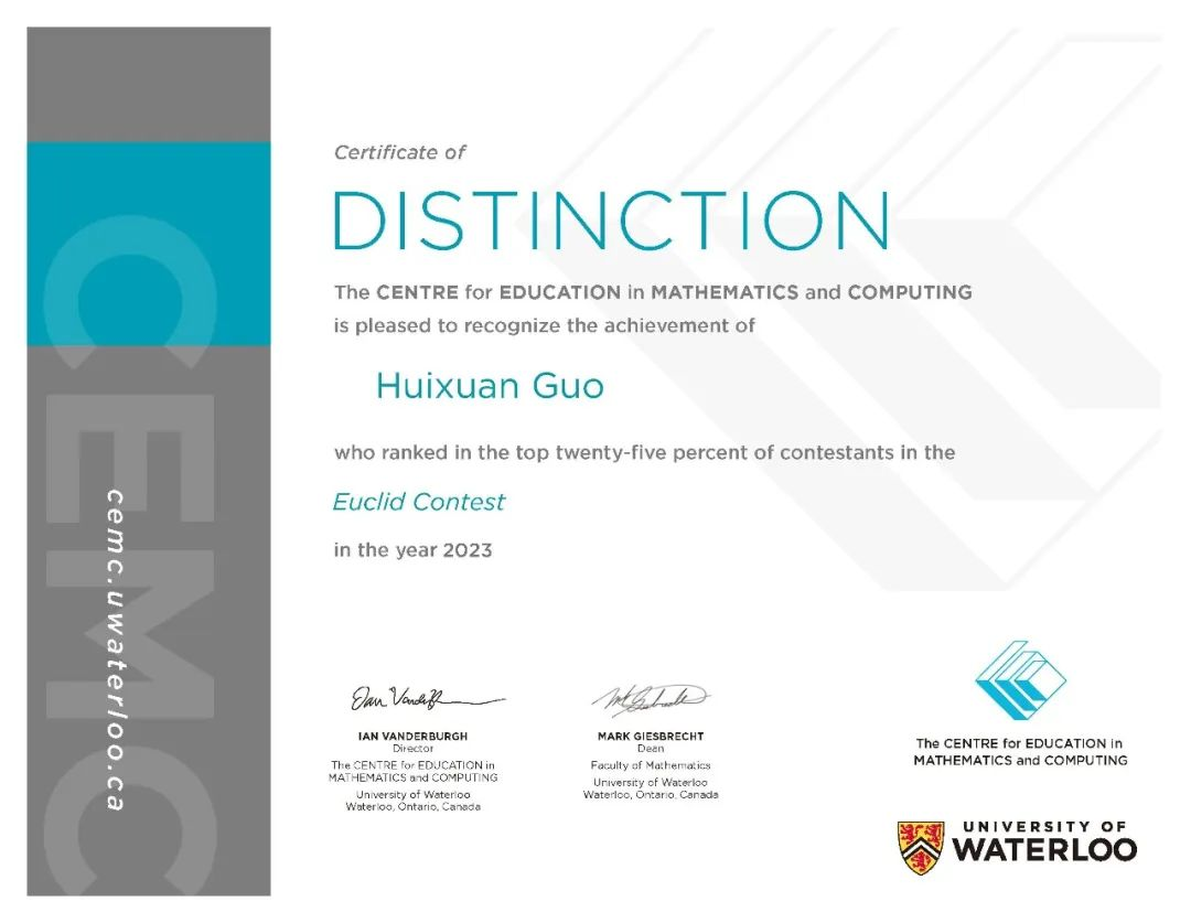 近年来,欧几里得数学竞赛对考生要求越来越高,竞争局势也愈加焦灼,SUIS高中部学子依然知难而进,与数学共舞,与思维疾驰,凭借坚实的数学基础,和持之以恒的信心加上更优化的学习方法,不断取得佳绩!